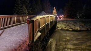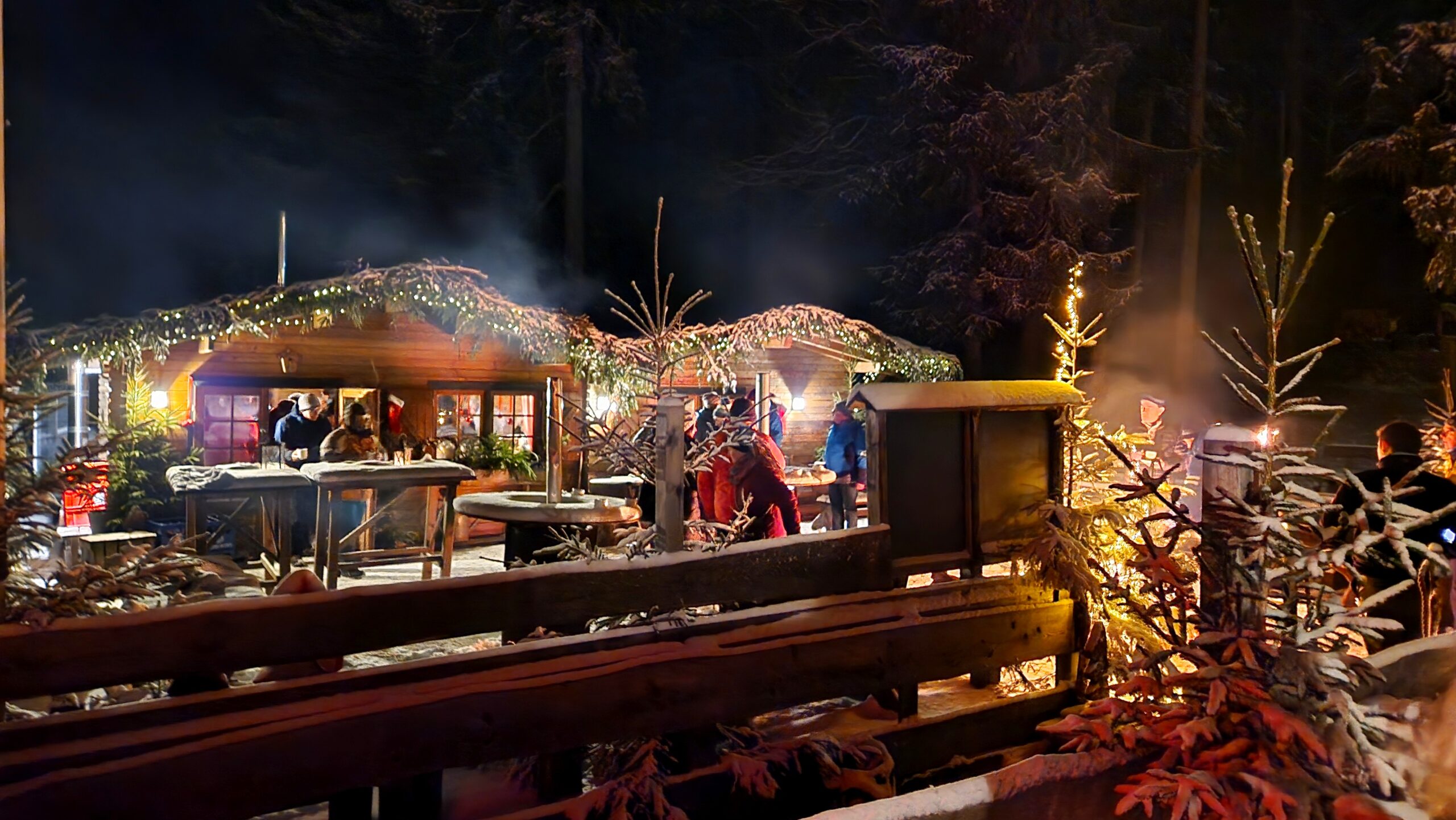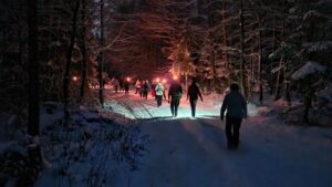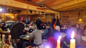 An einem Sammelpunkt am Ortsrand wurden uns Fackeln gereicht und bei aufkommender Dunkelheit wanderten wir nun durch einen wahren winterlichen Märchenwald mit verschneiten Fichten zum Fichtelsee. Bei Glühwein und Wandertagsbier genossen wir gesellige Momente in einer am See gelegenen urigen Almhütte. Auch das leibliche Wohl kam nicht zu kurz.