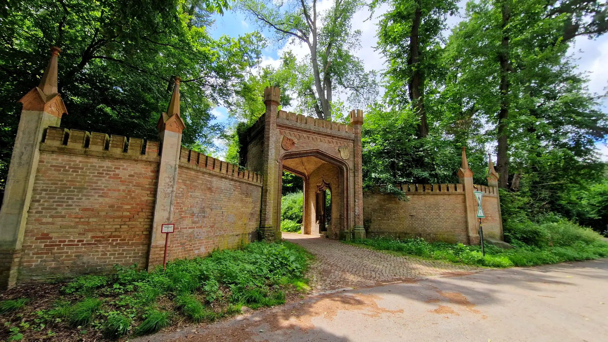 Gut gestärkt stand nun abermals eine etwas sportive Querung des Glienicker Parks an, um anschließend hinter der Königsstraße den Böttcherberg mit seiner Loggia Alexandra zu erklimmen. Unser Weg durch den Park Babelsberg führte zu dem Dampfmaschinenhaus, dem Schloss Babelsberg, dem ‚Schwarzen Meer‘, der Siegessäule auf der Luisenhöhe, der ehemaligen Berliner Gerichtslaube und zum Flatowturm.