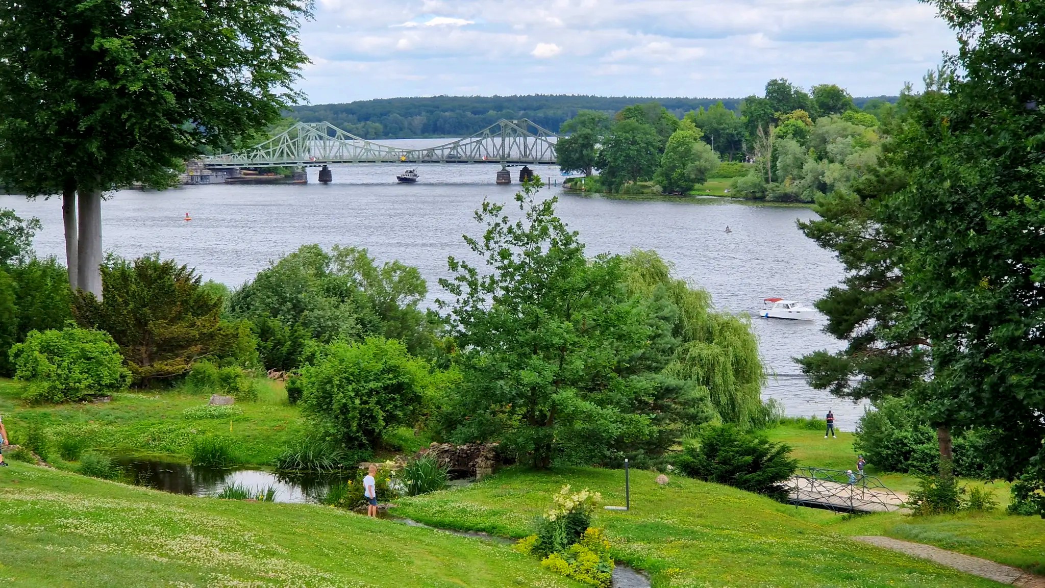 Gestartet wurde um 10:00 Uhr am Perugiaplatz, es folgte der Sacrow-Paretzer Kanal, dem wir in Richtung Jungfernsee folgten. Durch den Neuen Garten, vorbei am Schloss Cecilienhof, erreichten wir die Glienicker Brücke, von wo wir den herrlichen Blick auf Schloss Babelsberg genießen konnten.