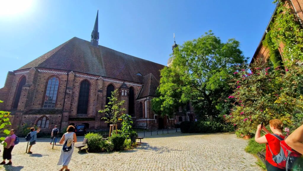 So standen wir auch bald vor dem ehemaligen Dominikanerkloster St. Pauli. Es beherbergt heute das Archäologische Landesmuseum und bietet mit seinen wunderschönen Glaskunst verzierten Räumen eine Möglichkeit zur Anmietung für Musikveranstaltungen und Hochzeiten. Hier trafen wir auf unseren ersten Waldmops. Danach begaben wir uns Richtung Nordosten. Über Paulinen- und Steinstraße gelangten wir zur Kirche St. Katharinen, einer dreischiffigen Hallenkirche im spätgotischen Stil und größte Kirche der Stadt. Einst war hier König Gustav Adolf vor seiner Überführung nach Schweden aufgebahrt.