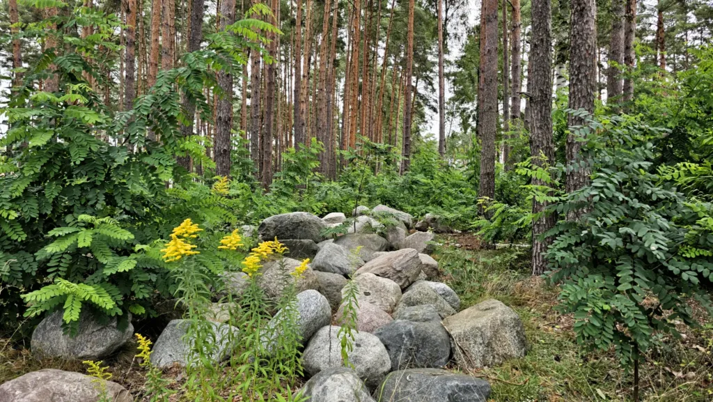 Mit den Eckpunkten Scharmützelsee, Petersdorfer See, Großer Kolpiner See und Markgrafensteine führte uns diese Wanderung durch die erstaunlich hügelige Landschaft als Rundtour vom mondänen Kurort Bad Saarow aus. Es gab nicht nur Ausblicke auf den größten Findling und einen der größten Seen Brandenburgs entlang der Route, sondern auch viele andere Naturschönheiten und Aussichtspunkte schmückten die Strecke durch das ehemalige Bergbaugebiet.